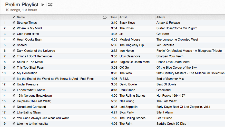I’ve shared this before elsewhere, but this is the playlist I made that semester to musically represent my overall prelim experience. It’s actually a pretty defensible set on its own, and could, I think, be profitably used during any period that your adrenalin and cortisol levels are seriously spiking.