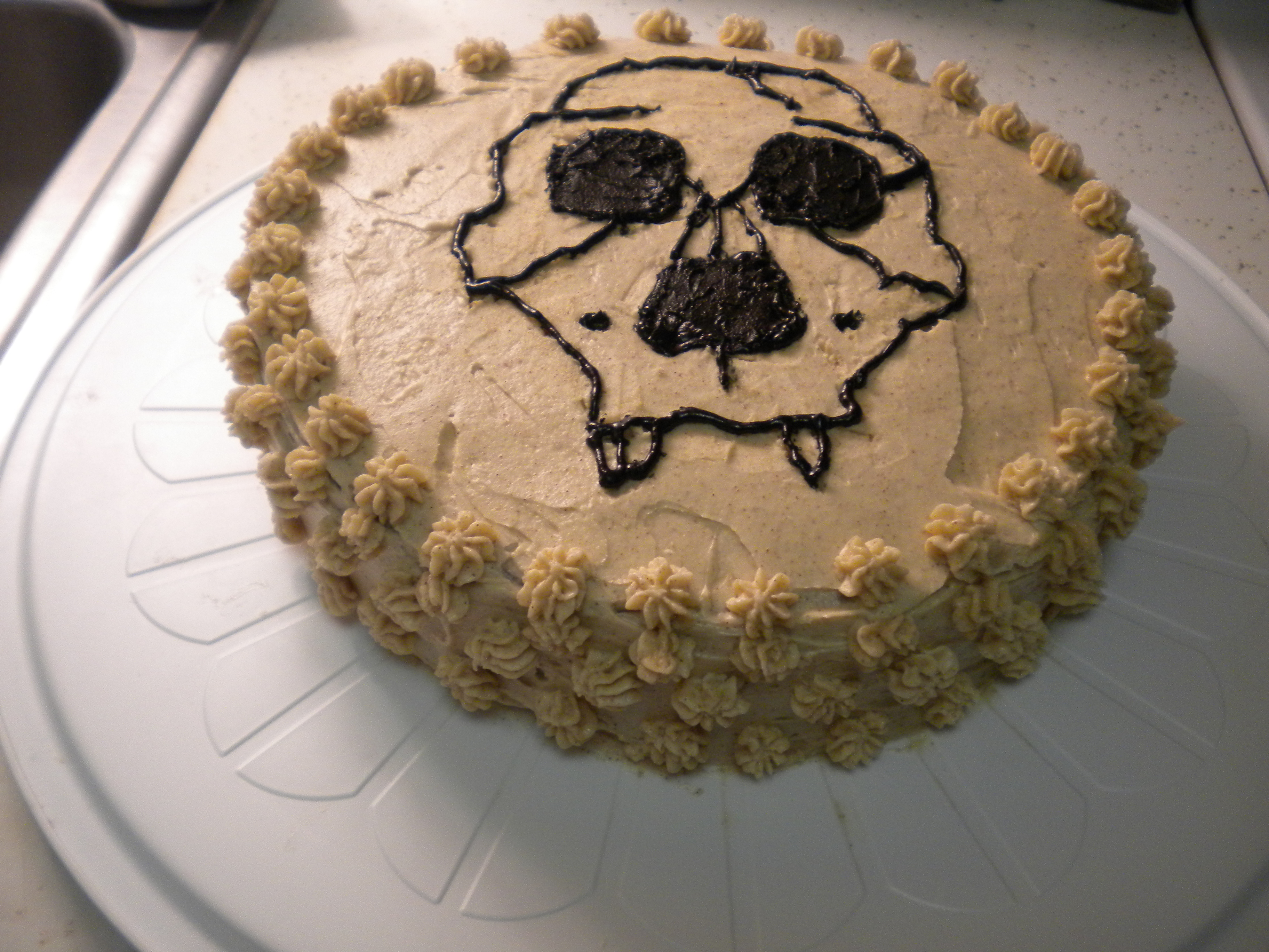 This offering didn’t have anything osteological decorating it, per se, but I find it extremely amusing that I inadvertently included some crania in my attempt to photographically document the stratigraphy of the three-layer monstrosity.