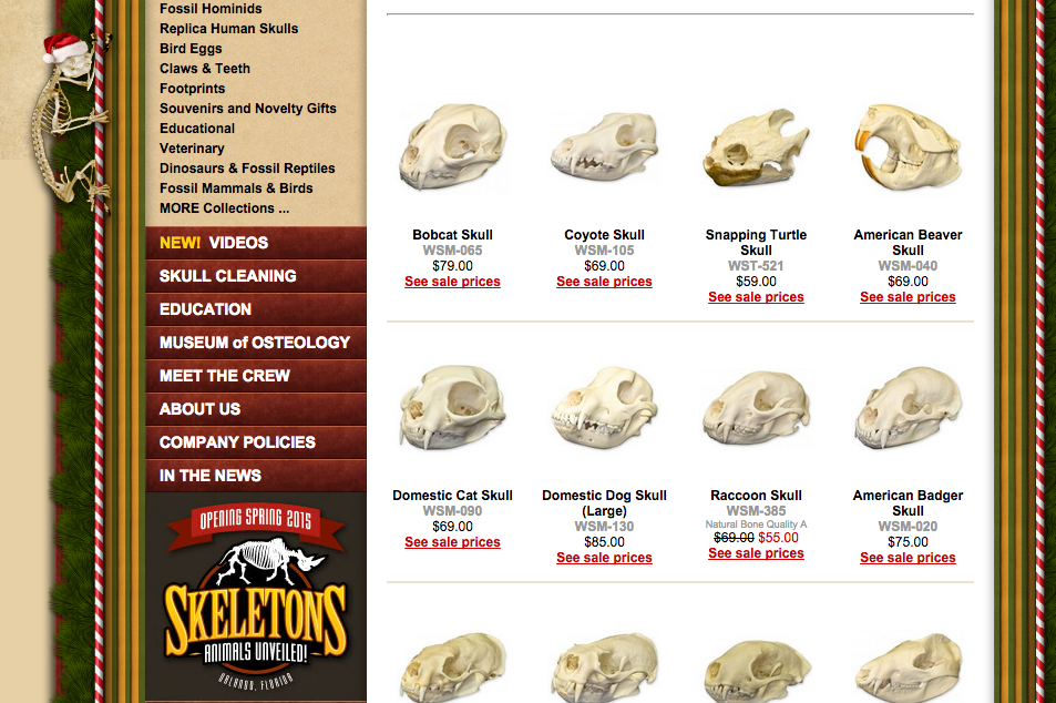 Most osteologists enjoy a slightly morbid tinge to their home decor. To that end, assuming you don’t want to find some roadkill and macerate it yourself, I would suggest perusing the selection at Skulls Unlimited. The company has a wide range of animal skulls available, so you can choose whichever animal you feel most suits your friend or loved one, be it an oppossum, pine marten, or straw-colored fruit bat. They have a series of holiday deals going on right now, many of which are in the $30-40 range, so I would recommend taking a look if you’re strapped for gift ideas.