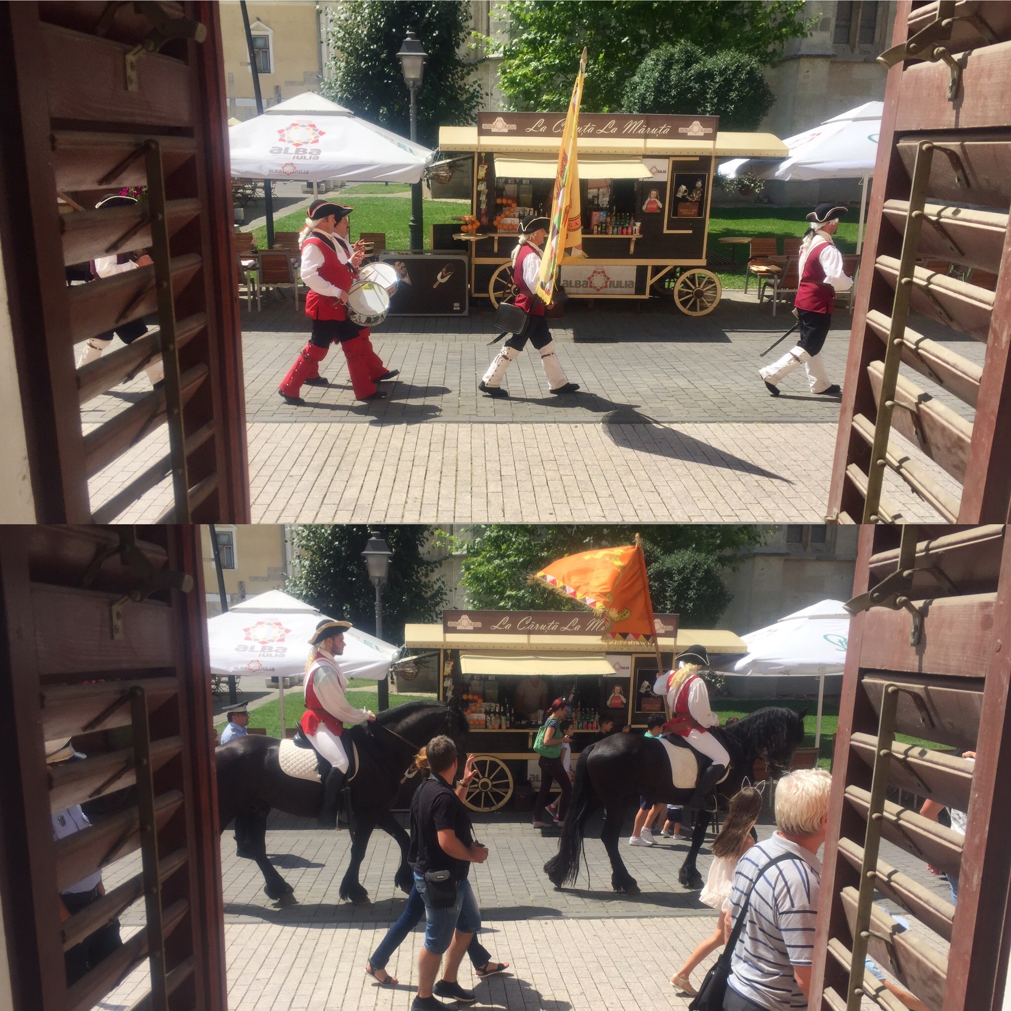 Daily parade, complete with horses