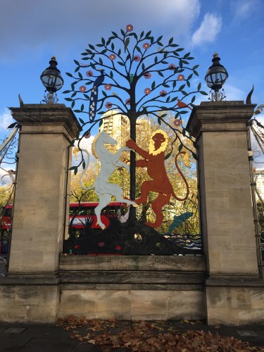 As the light was fading* it was time to walk back through the Wellington Arch and catch the tube back to King’s Cross.