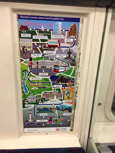 I was sad to leave my parents (mainly because they were staying at a fancy hotel that had a coffee room full of free pastries and cookies), but perked up once I noticed this map of the Picadilly Line while taking the tube back to King’s Cross.