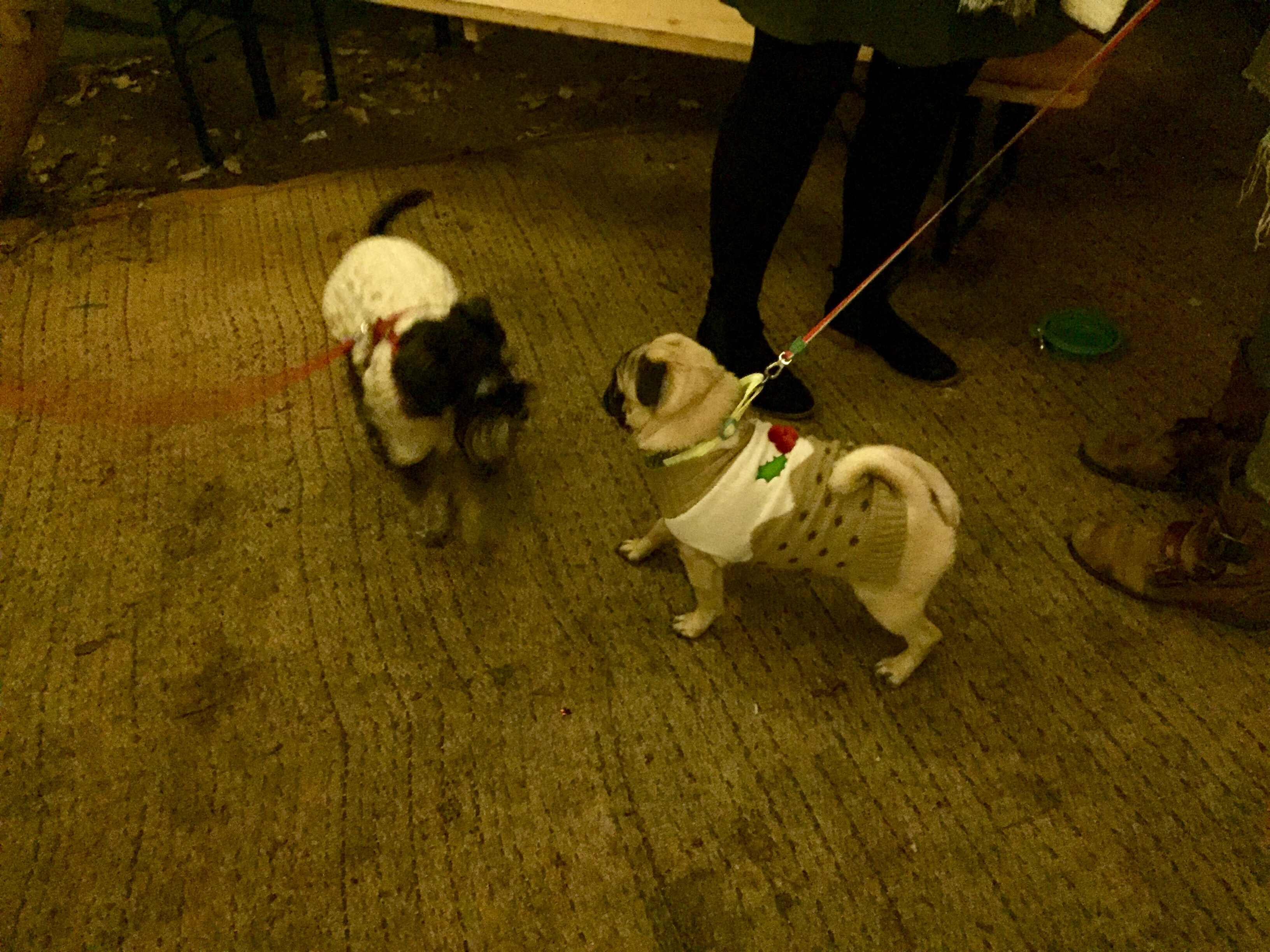 His name is Peanut and he is dressed like a Christmas pudding.